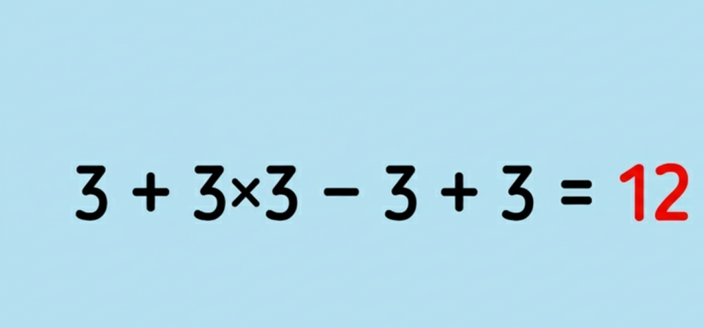 3 + 9 – 3 + 3 = 12 – 3 + 3 = 9 + 3 = 12